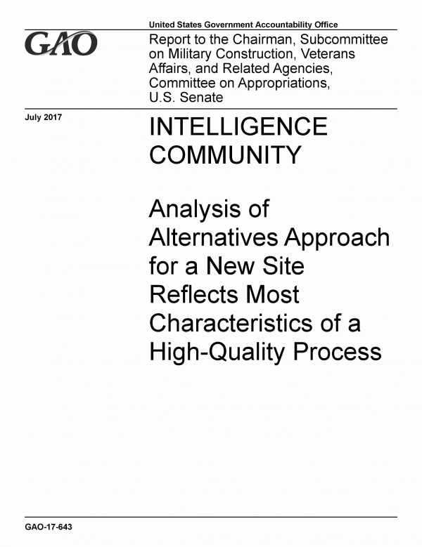 Intelligence Community : Analysis of Alternatives Approach for a New Site Reflects Most Characteristics of a High-Quality Process [Recurso electrónico]PDF