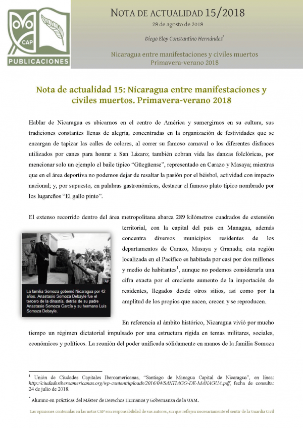 Nicaragua entre manifestaciones y civiles muertos. Primavera-verano 2018 [Recurso electrónico] PDF Notas de Actualidad