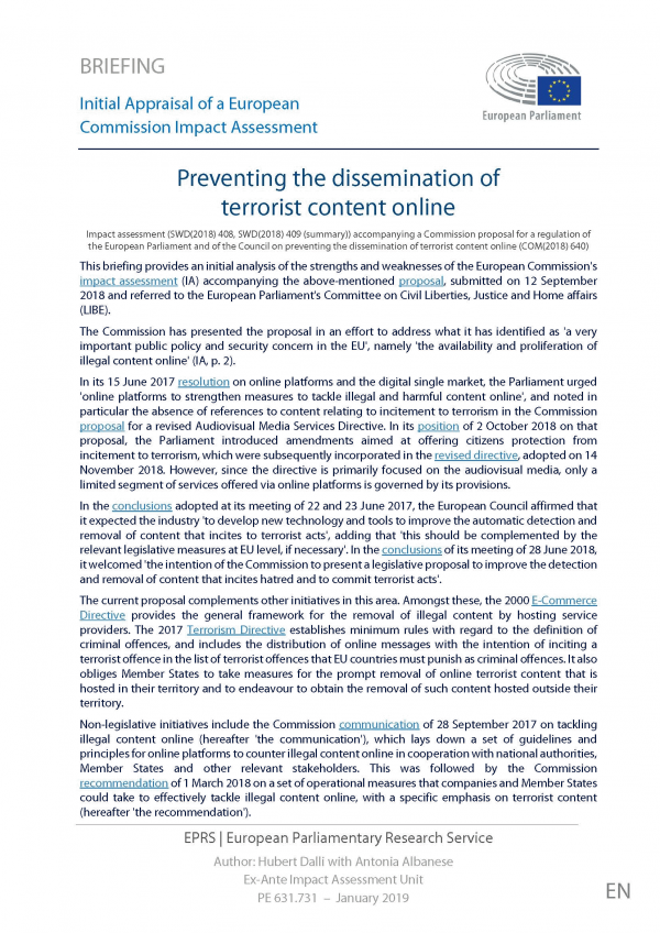 Preventing the dissemination of terrorist content online Hubert Dalli with Antonia Albanese