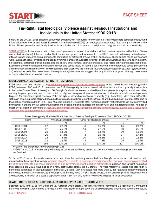 Far-Right Fatal Ideological Violence against Religious Institutions and Individuals in the United States [Recurso electrónico] PDF : 1990-2018
