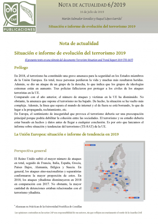 Situación e informe de evolución del terrorismo 2019 [Recurso electrónico] PDF Notas de Actualidad