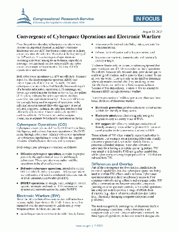 Convergence of Cyberspace Operations and Electronic Warfare [Recurso electrónico] PDF