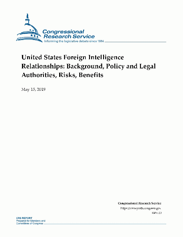 United States Foreign Intelligence Relationships [Recurso electrónico] PDF : Background, Policy and Legal Authorities, Risks, Benefits