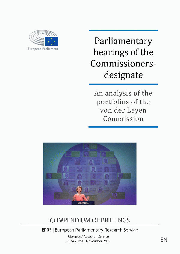 Parliamentary hearings of the Commissioners-designate [Recurso electrónico] PDF : An analysis of the portfolios of the von der Leyen Commission Members' Research Service