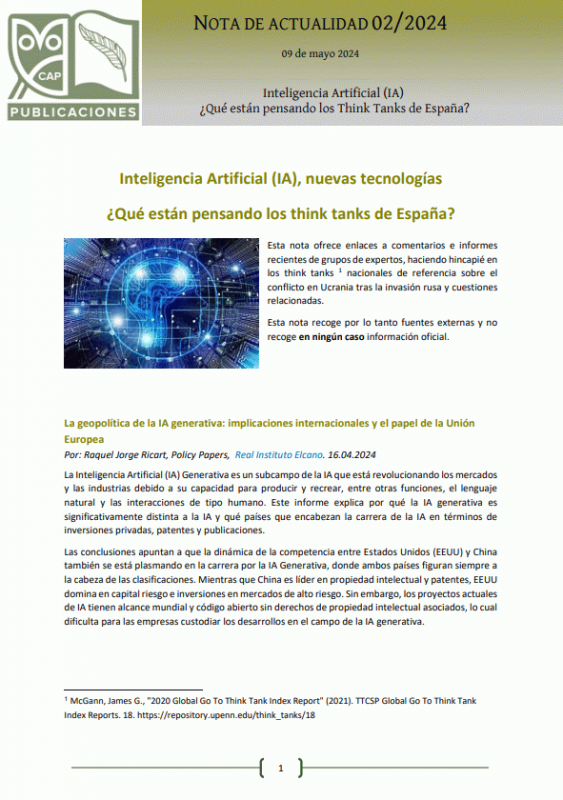 ¿Qué están pensando los Think Tanks de España? Inteligencia Artificial (IA) Notas de Actualidad