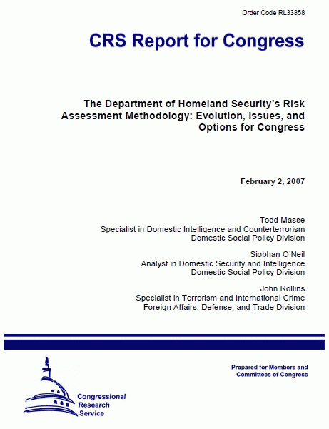 The Department of Homeland Security’s risk assessment methodology Congressional Research Service [Recurso electrónico]PDF : evolution, issues, and options for Congress