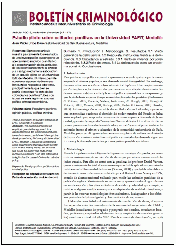 ArticleSubject(s): Additional physical formats: Boletín criminológico (Internet)Online resources: Available additional physical forms: - Tiene edición en Internet